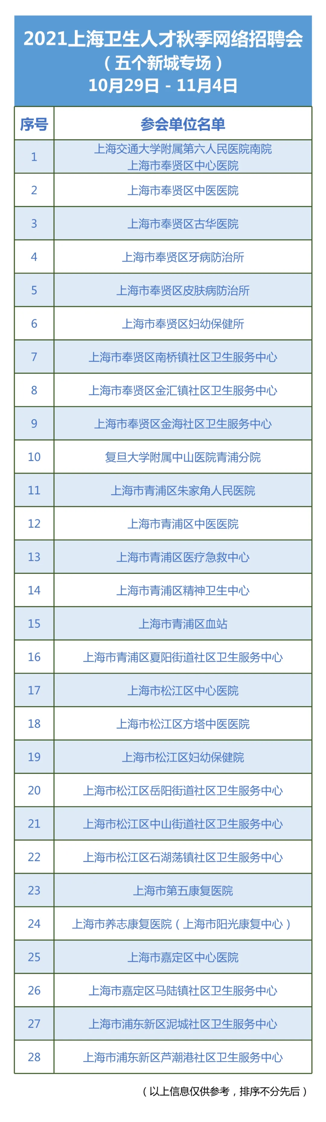 招聘 | 2021上海卫生人才秋季网络招聘会(五个新城专场)今日开启
