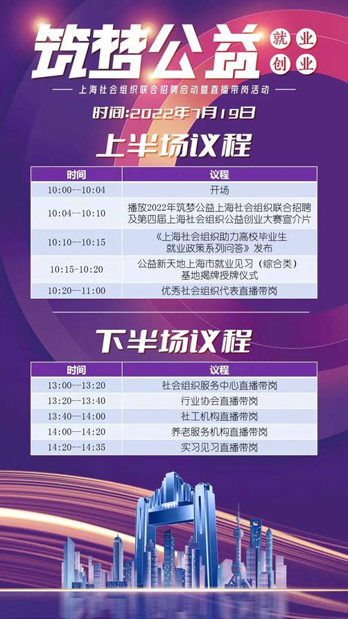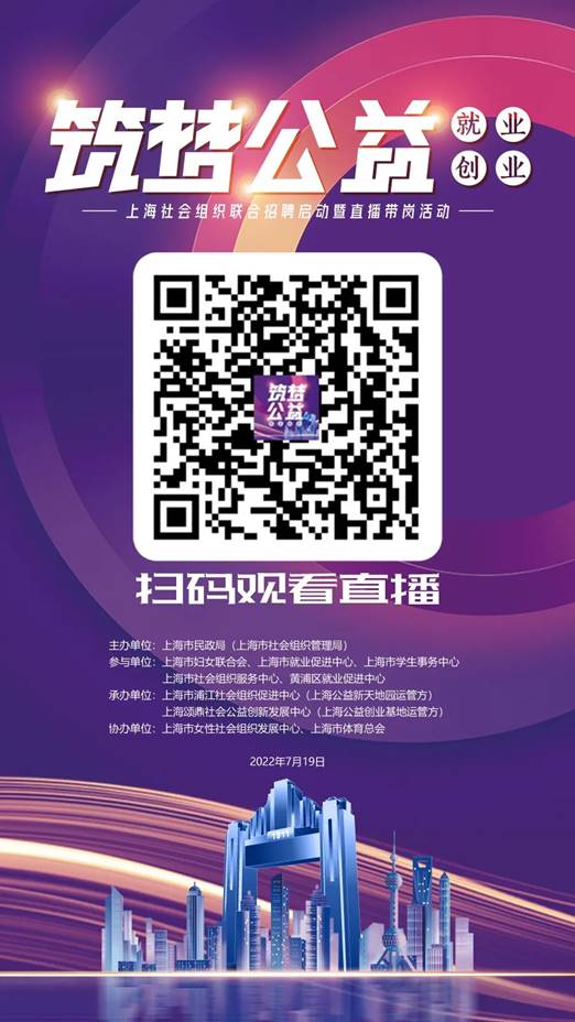 经过紧锣密鼓的筹备, 2022年“筑梦公益”上海社会组织联合招聘启动暨直播带岗活动将于7月19日在上海公益新天地园举行,同步进行线上直播。