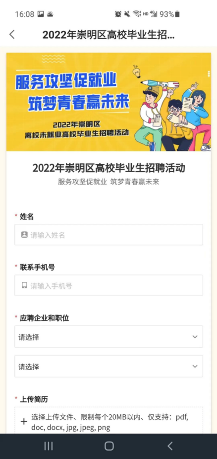 3.填写相关信息并上传个人简历