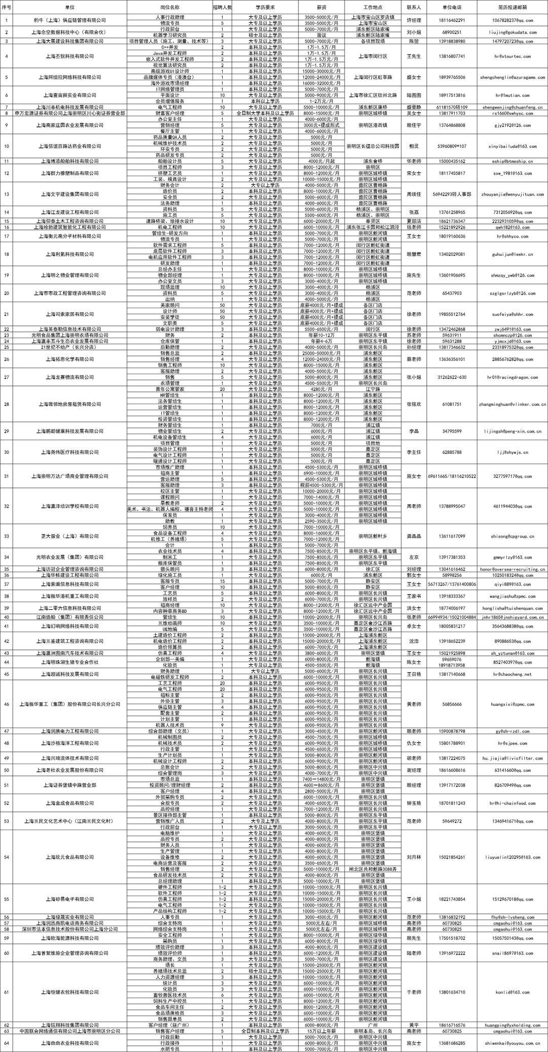 即日起,求职者可通过岗位所留联系方式或“上海崇明”App投递简历。具体内容以单位为准,额满为止。