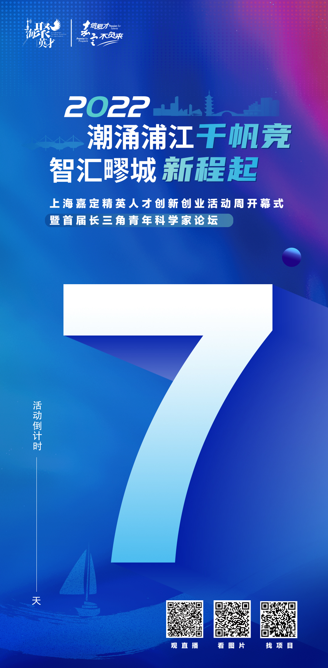 群英至,大幕启。“潮涌浦江千帆竞 智汇疁城新程起”——2022上海嘉定精英人才创新创业活动周暨首届长三角青年科学家论坛即将拉开序幕。本届人才周将以“潮涌浦江千帆竞 智汇疁城新程起”为主题,分为“预热活动”“主场开幕式”“长三角青年科学家论坛”以及“分会场活动”四大板块。