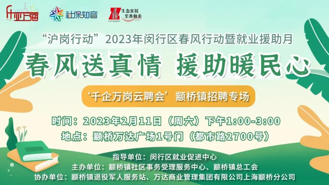 活动内容:“沪岗行动”2023年闵行区春风行动暨就业援助月颛桥招聘专场