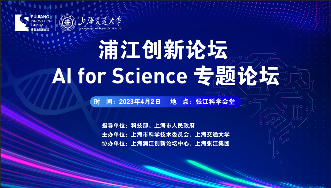 人工智能在前沿交叉科学领域已取得许多颠覆性成果,AI for Science成为科学研究新范式。为了加快打造上海人工智能高地,助力上海科创中心建设,上海市科学技术委员会和上海交通大学将于2023年4月2日共同举办浦江创新论坛会议季活动“AI for Science 专题论坛”。
