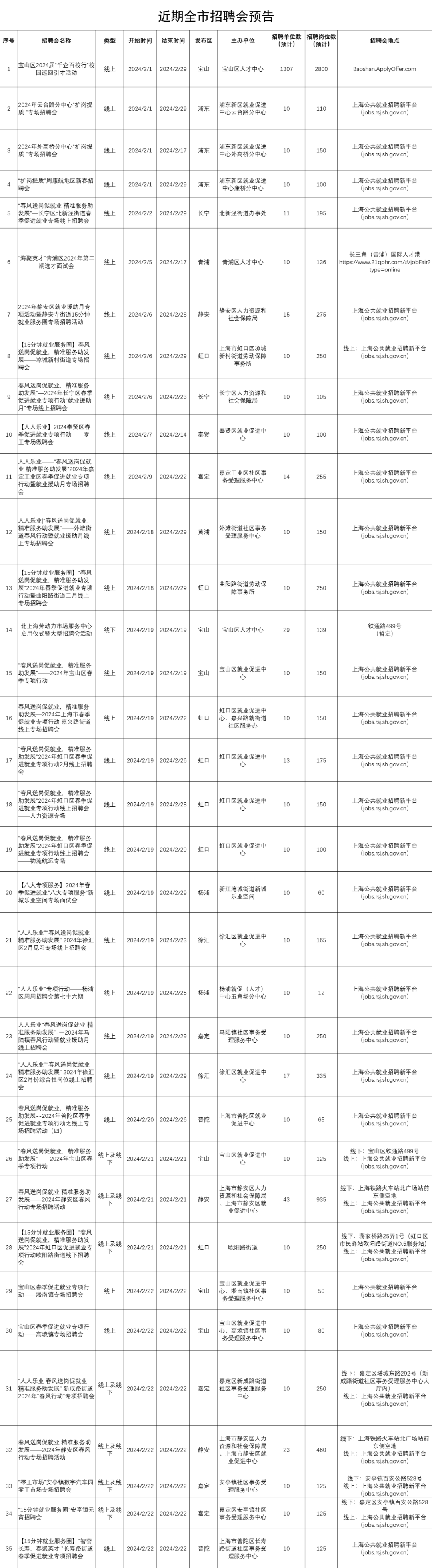 为深入贯彻党中央、国务院和市委、市政府决策部署,切实抓好稳就业开局起步工作,本市将在全市范围内集中开展系列专场招聘活动,聚焦新市民和青年人等重点群体就业帮扶,通过线上线下紧密结合,打造春节期间“不打烊”招聘服务。在新的一年,让我们与广大劳动者“就”在上海,乐在其中!