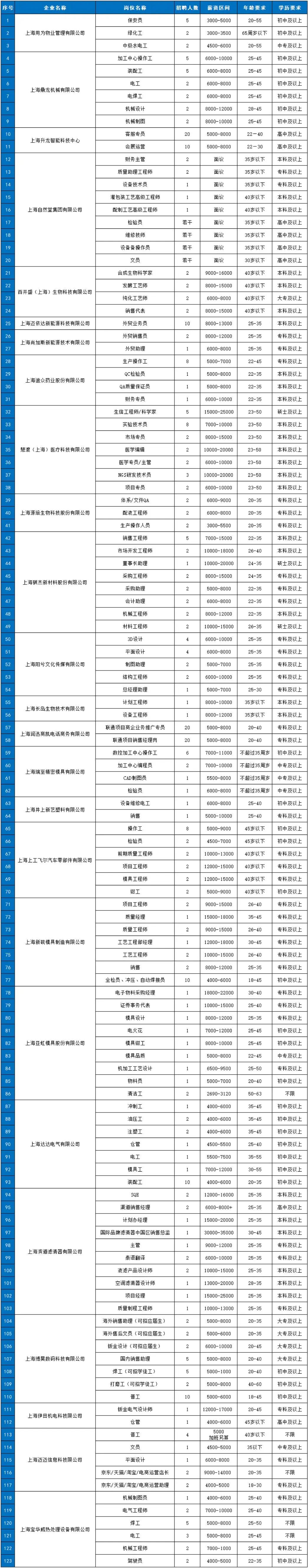 本次活动预计参会企业25家,招聘岗位包括:质量助理工程师、项目工程师、医学编辑、医学专员/主管、董事长助理、总经理助理、3D设计、平面设计、泰语翻译、海外销售助理、海外售后文员、清洁工、普工、文员、电工、驾驶员等123个,招聘人数346人。
