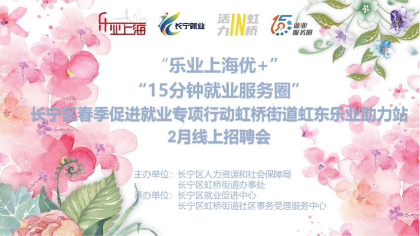 “乐业上海优+”“15分钟就业服务圈”长宁区春季促进就业专项行动虹桥街道虹东乐业助力站2月线上招聘会