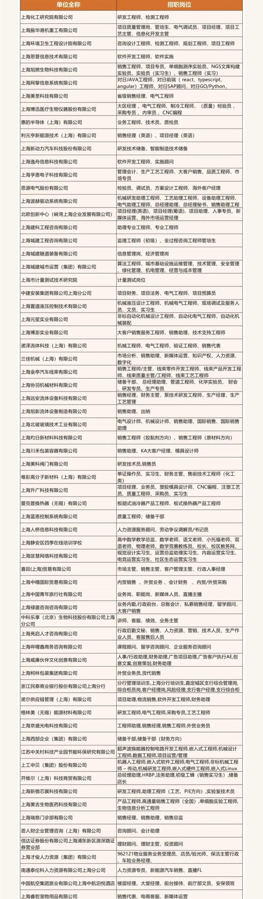 分为留学回国人员和综合招聘专区。带来众多优质岗位,从新兴科技到传统制造,从金融领域到文化创意,无论你是职场新人还是经验达人,都能在此找到心仪的发展机会。其中,留学回国人员招聘专区特向留学回国人员定向招聘,采取提前预约形式,专业背景主要集中在金融、财务、生物医药、数据科学等领域。