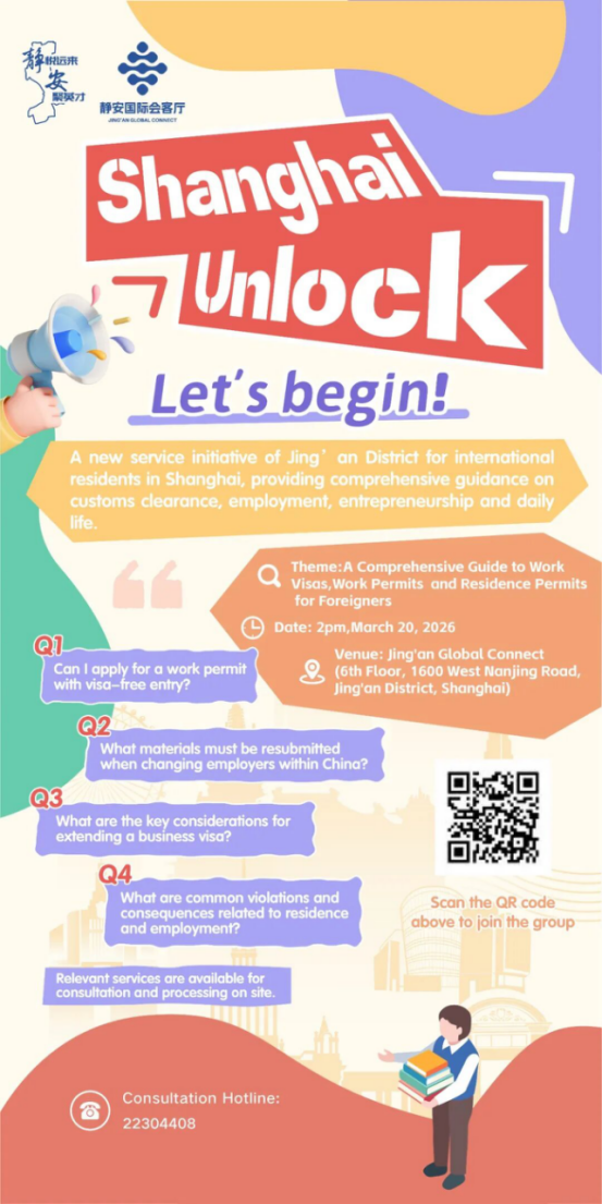 “Shanghai Unlock” is a new service initiative of Jing’an District for international residents in Shanghai, providing comprehensive guidance on customs clearance, employment, entrepreneurship and daily life.